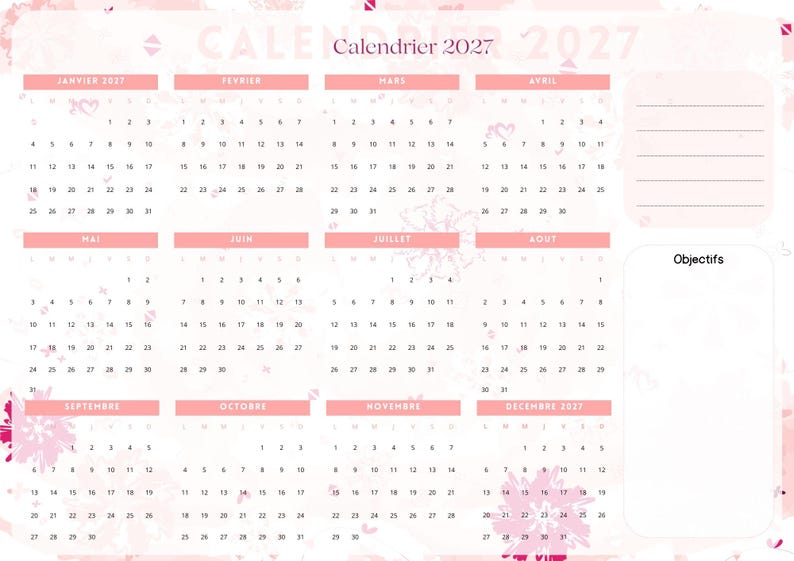 A3 format (29.7 x 42 cm) for a clear view of the year.